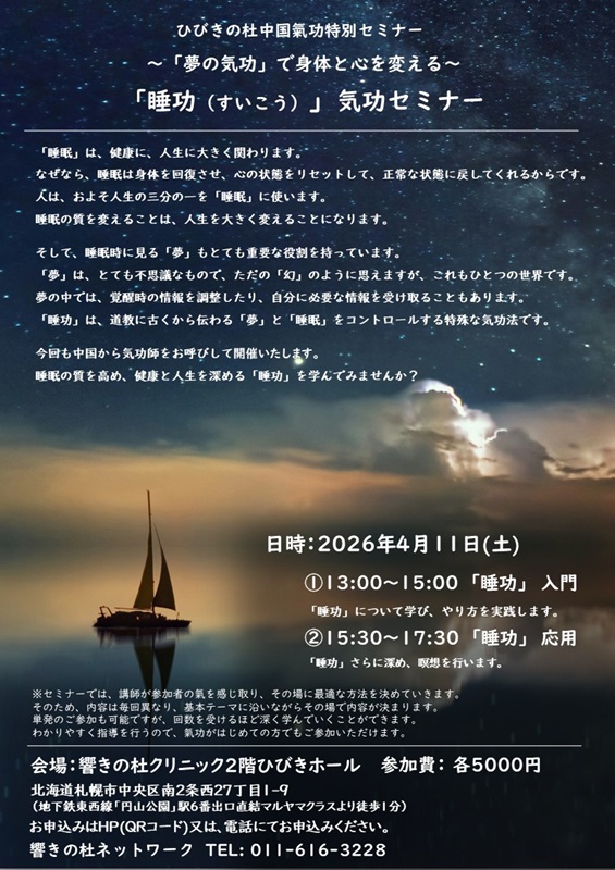 4/11(土)「睡功」気功セミナー~「夢の気功」で身体と心を変える~
